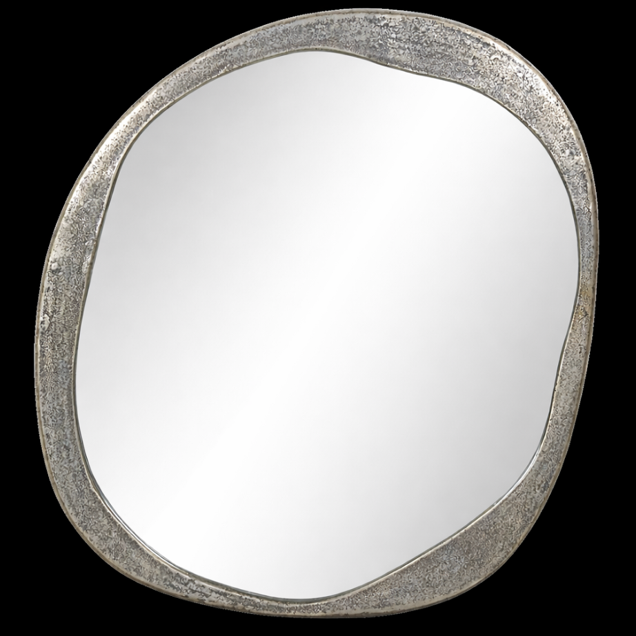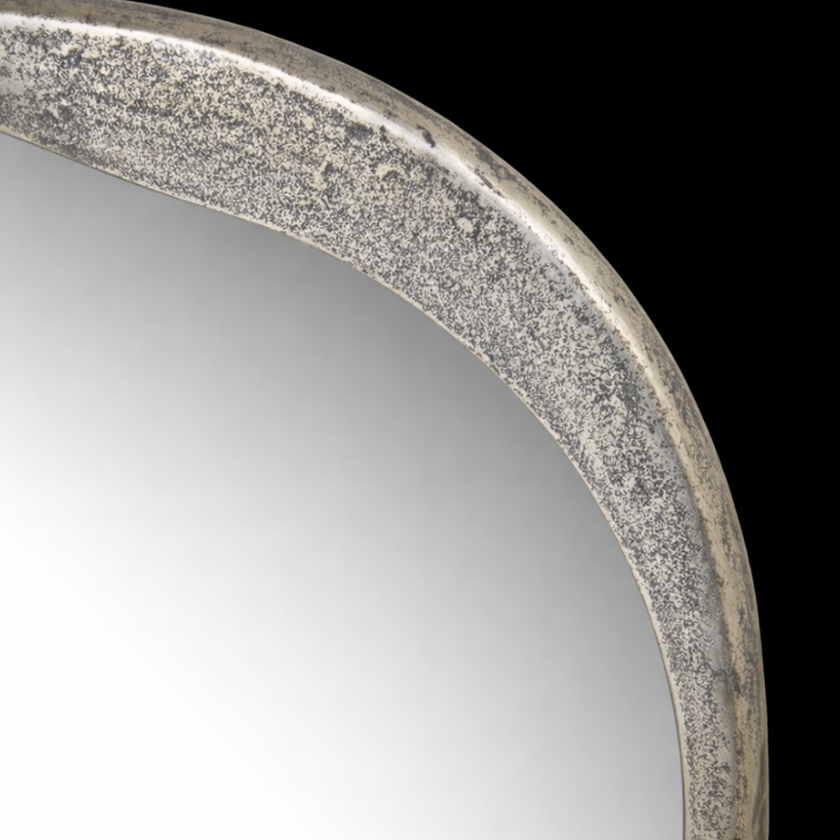 Organically shaped aluminum with a raw, antique nickel finish frames this mirror, for a playful motif that channels molten metal and plays with weight and texture. With two hanging orientations, it's an adaptable piece that's full of character.