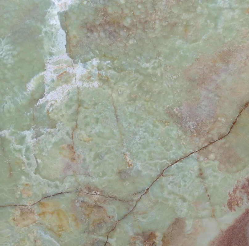 Green Onyx is a translucent, one of a kind stone with light green background and bronze veins. This masterpiece of nature is a great accent to any interior design.