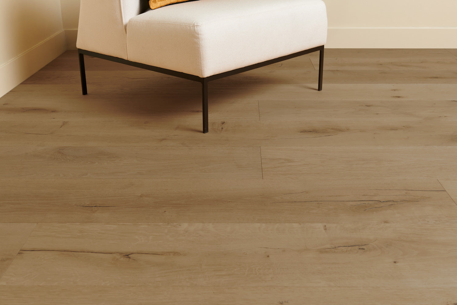 This unique hardwood floor is treated with multiple layers of Matte Oil Finish, delivering a natural appearance and tactile experience while ensuring strong durability. Enhanced by light sanding and wire brushing, the flooring features a refined texture that complements its smooth surface.