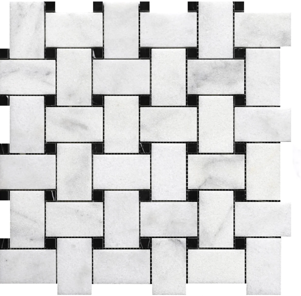 Aloe Vera & Silky Black Basketweave Polished Mosaic