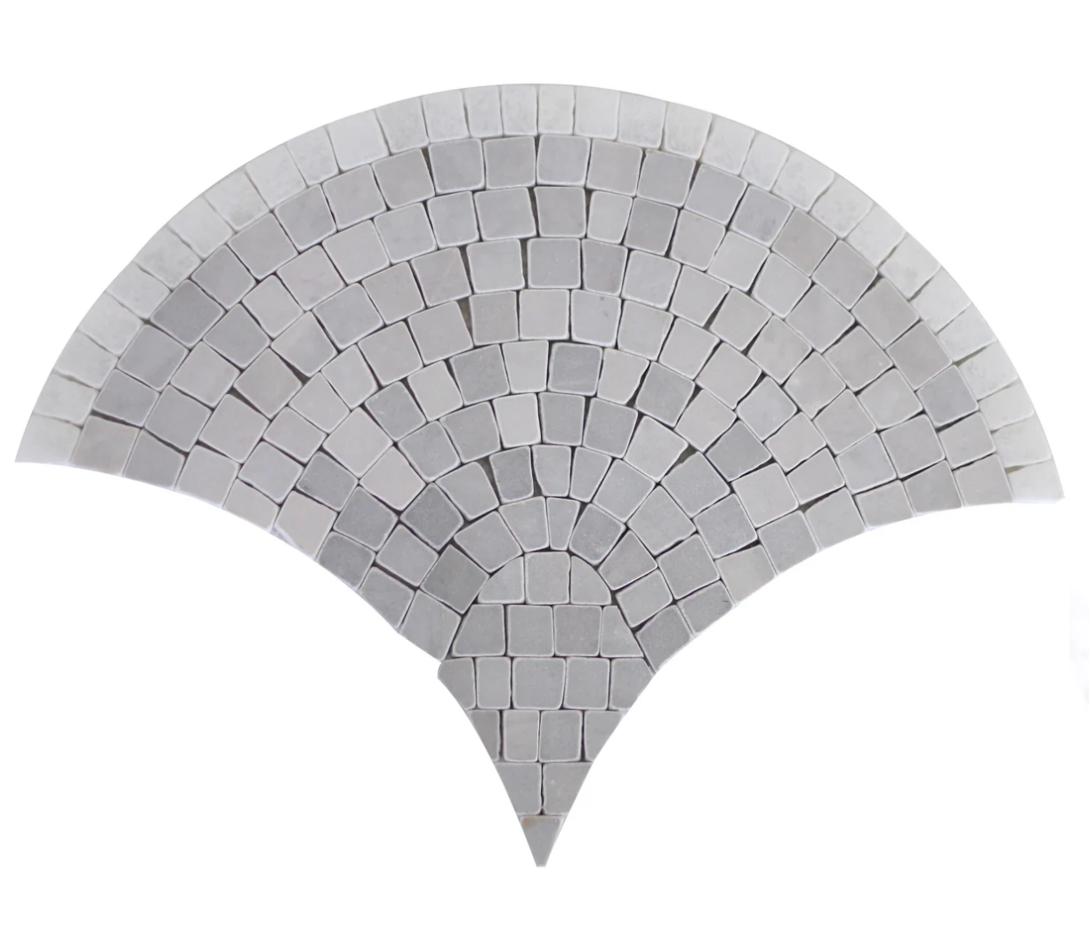 Grey Earth & Icy Grey & White Snow Scallop Tumbled Mosaic