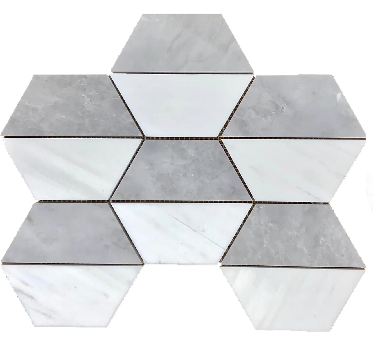 White Glacier & Icy Grey Honeycomb 5'' Honed Mosaic